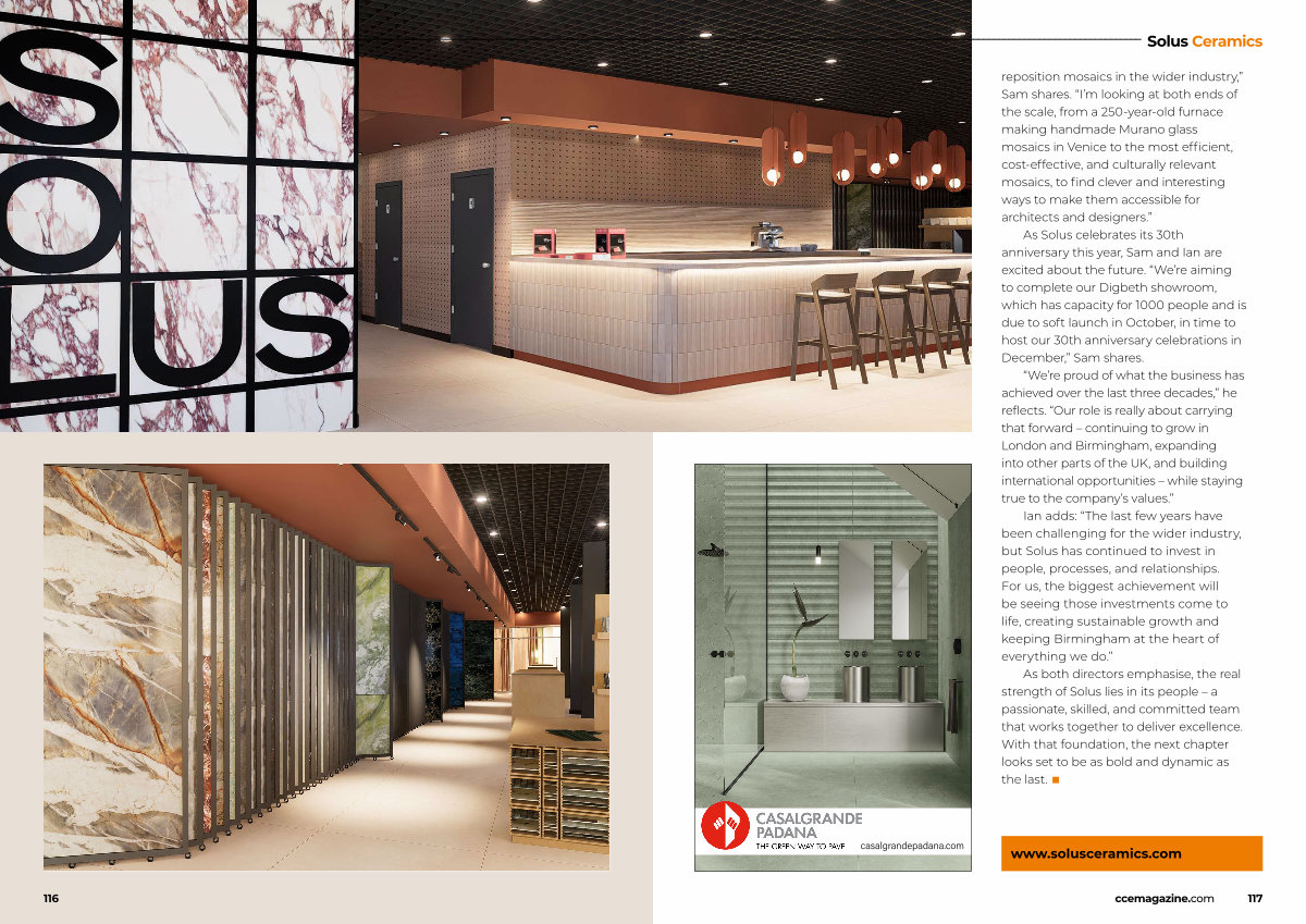 As both directors emphasise, the real strength of Solus lies in its people – a passionate, skilled, and committed team that works together to deliver excellence. With that foundation, the next chapter looks set to be as bold and dynamic as the last. ■ casalgrandepadana. com www. solusceramics. com