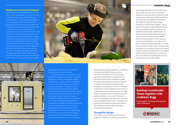 David goes on to highlight some of the projects Lindbäcks is currently working on, ccemagazine. com 121