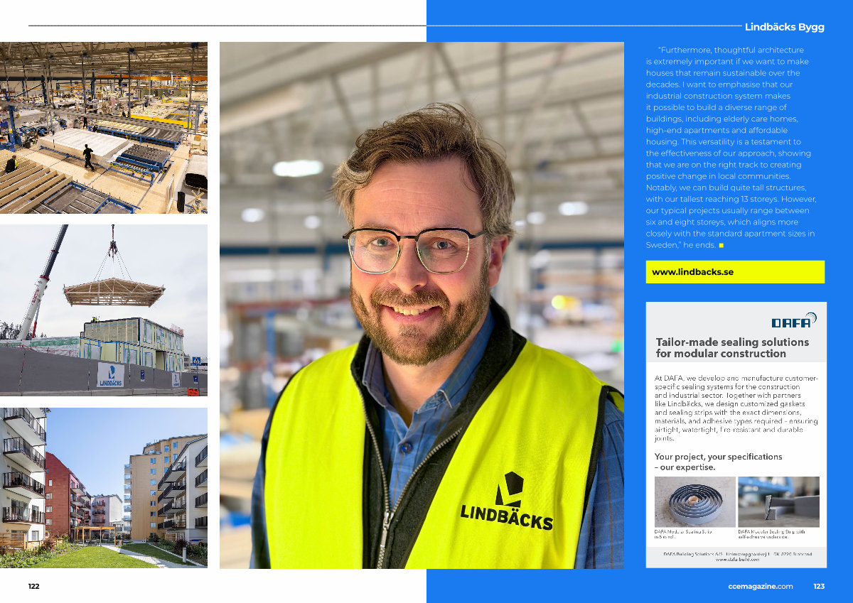 “ Furthermore, thoughtful architecture is extremely important if we want to make houses that remain sustainable over the decades. I want to emphasise that our industrial construction system makes it possible to build a diverse range of buildings, including elderly care homes, high-end apartments and affordable housing. This versatility is a testament to the effectiveness of our approach, showing that we are on the right track to creating positive change in local communities. Notably, we can build quite tall structures, with our tallest reaching 13 storeys. However, our typical projects usually range between six and eight storeys, which aligns more closely with the standard apartment sizes in Sweden,” he ends. ■