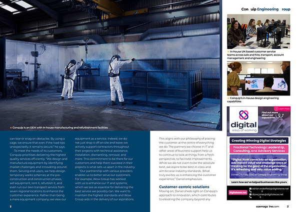 can tear or snag on obstacles. By using a cage, we ensure that even if the load tips unexpectedly, it remains secure,” he says. To meet the needs of its customers, Conquip prioritises delivering the highest quality services efficiently.“ We design and manufacture equipment by identifying market challenges and innovating around them. Serving end-users, we help design temporary works schemes at the preconstruction and construction phases, sell equipment, rent it, refurbish it, and even run our own transport service from seven regional locations to enhance the customer experience. Rather than being a mere equipment company, we view our equipment as a service. Indeed, we do not just drop it off on site and leave; we actively support contractors throughout their projects with technical assistance, installation, dismantling, removal, and more. This commitment to be there for our customers and help them succeed in their projects is what sets us apart in the industry.