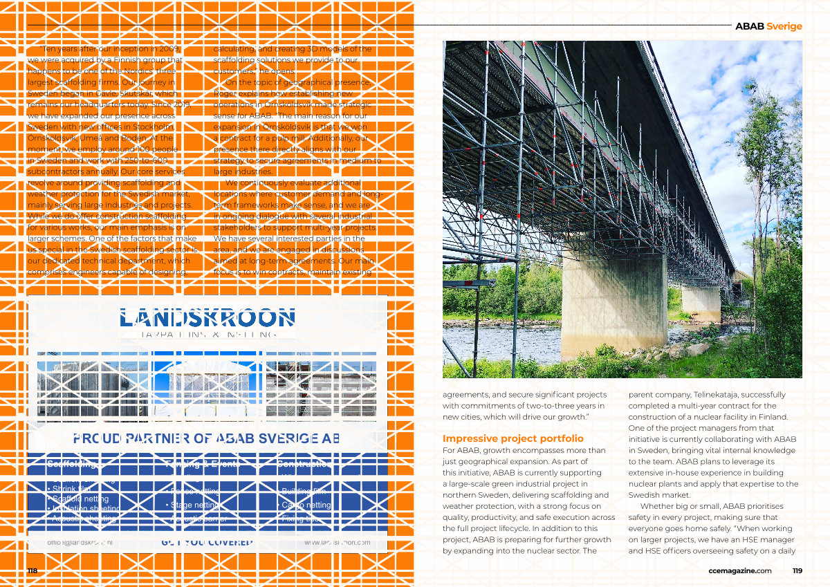For ABAB, growth encompasses more than just geographical expansion. As part of this initiative, ABAB is currently supporting a large-scale green industrial project in northern Sweden, delivering scaffolding and weather protection, with a strong focus on quality, productivity, and safe execution across the full project lifecycle. In addition to this project, ABAB is preparing for further growth by expanding into the nuclear sector. The parent company, Telinekataja, successfully completed a multi-year contract for the construction of a nuclear facility in Finland. One of the project managers from that initiative is currently collaborating with ABAB in Sweden, bringing vital internal knowledge to the team. ABAB plans to leverage its extensive in-house experience in building nuclear plants and apply that expertise to the Swedish market.