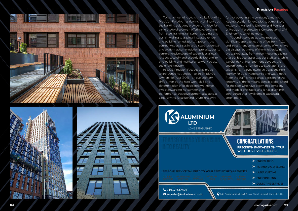 further powering the company’ s marketleading position for decades to come. Steve McGowan, Managing Director and Founder of Precision Facades, joins Construction & Civil Engineering to tell us more.