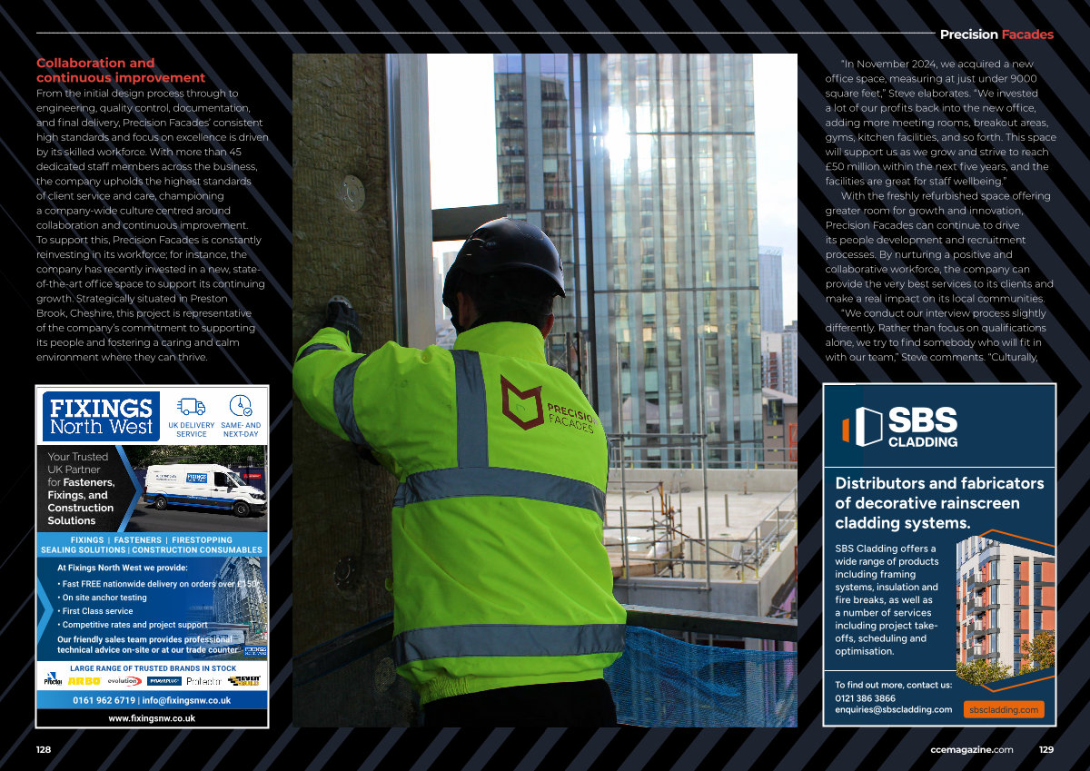 With the freshly refurbished space offering greater room for growth and innovation, Precision Facades can continue to drive its people development and recruitment processes. By nurturing a positive and collaborative workforce, the company can provide the very best services to its clients and make a real impact on its local communities.