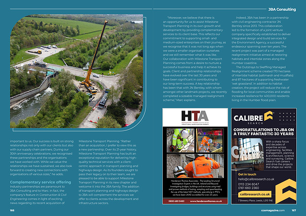 Milestone Transport Planning.“ Rather than an acquisition, I prefer to view this as a new partnership. Over its 21-year history, Milestone Transport Planning has built an exceptional reputation for delivering highquality technical services with a clientcentric approach in transport planning and highways design. As its founders sought to pass their legacy on to their team, we are pleased to be able to support Milestone Transport Planning in its new chapter and welcome it into the JBA family. The addition of transport planning and highways design to JBA will complement the services we offer to clients across the development and infrastructure sectors.