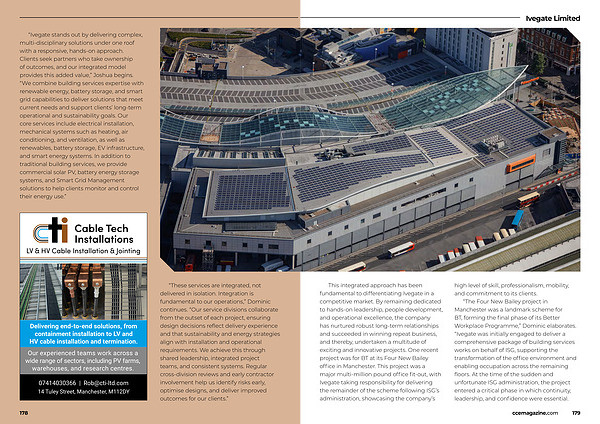 “ Ivegate stands out by delivering complex, multi-disciplinary solutions under one roof with a responsive, hands-on approach. Clients seek partners who take ownership of outcomes, and our integrated model provides this added value,” Joshua begins.“ We combine building services expertise with renewable energy, battery storage, and smart grid capabilities to deliver solutions that meet current needs and support clients’ long-term operational and sustainability goals. Our core services include electrical installation, mechanical systems such as heating, air conditioning, and ventilation, as well as renewables, battery storage, EV infrastructure, and smart energy systems. In addition to traditional building services, we provide commercial solar PV, battery energy storage systems, and Smart Grid Management solutions to help clients monitor and control their energy use.”