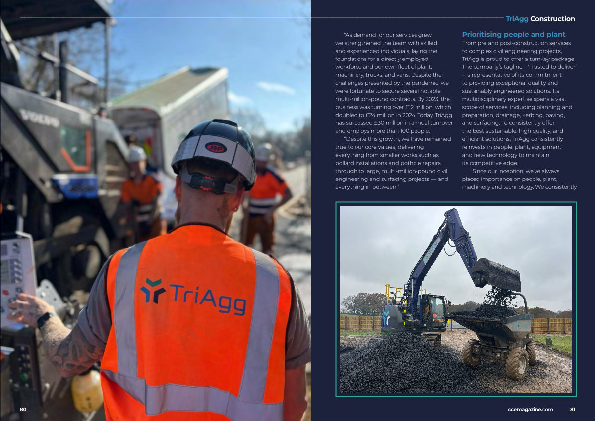 “ As demand for our services grew, we strengthened the team with skilled and experienced individuals, laying the foundations for a directly employed workforce and our own fleet of plant, machinery, trucks, and vans. Despite the challenges presented by the pandemic, we were fortunate to secure several notable, multi-million-pound contracts. By 2023, the business was turning over £ 12 million, which doubled to £ 24 million in 2024. Today, TriAgg has surpassed £ 30 million in annual turnover and employs more than 100 people.