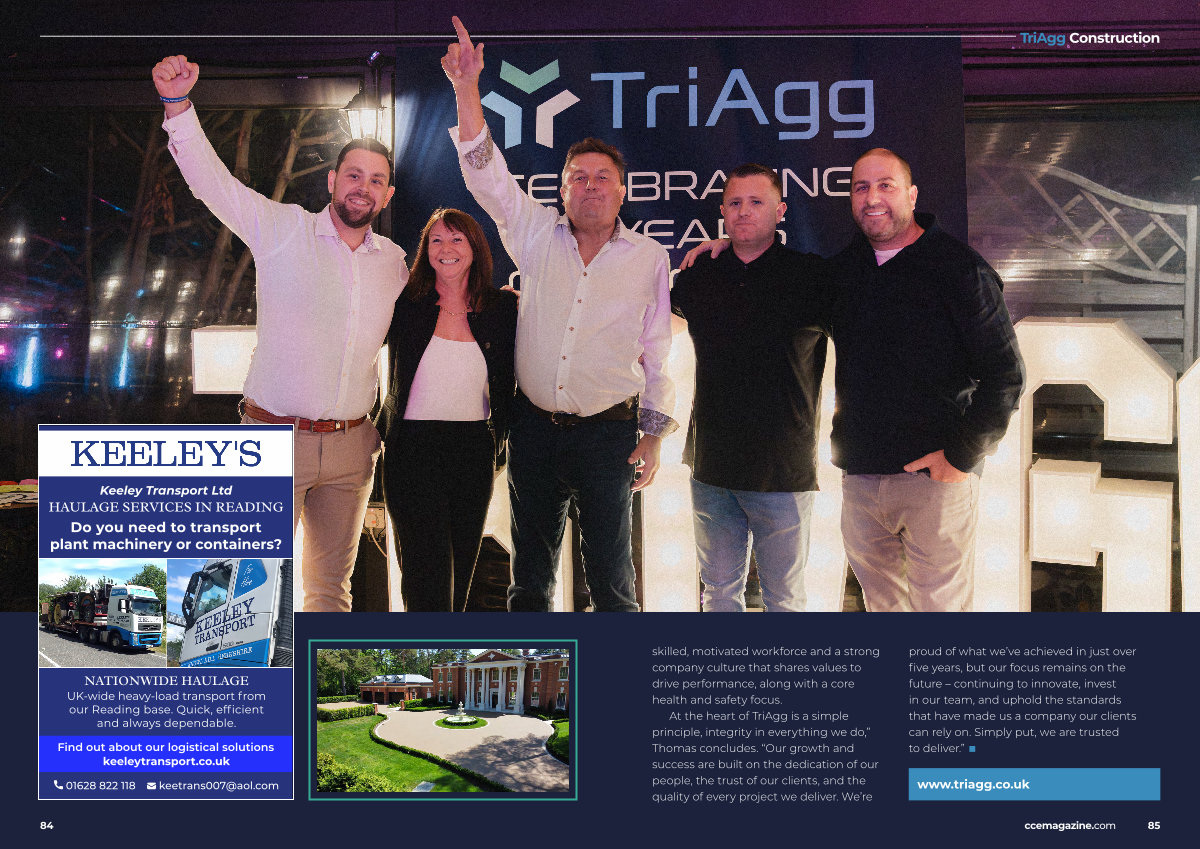 At the heart of TriAgg is a simple principle, integrity in everything we do,” Thomas concludes.“ Our growth and success are built on the dedication of our people, the trust of our clients, and the quality of every project we deliver. We’ re proud of what we’ ve achieved in just over five years, but our focus remains on the future – continuing to innovate, invest in our team, and uphold the standards that have made us a company our clients can rely on. Simply put, we are trusted to deliver.” ■