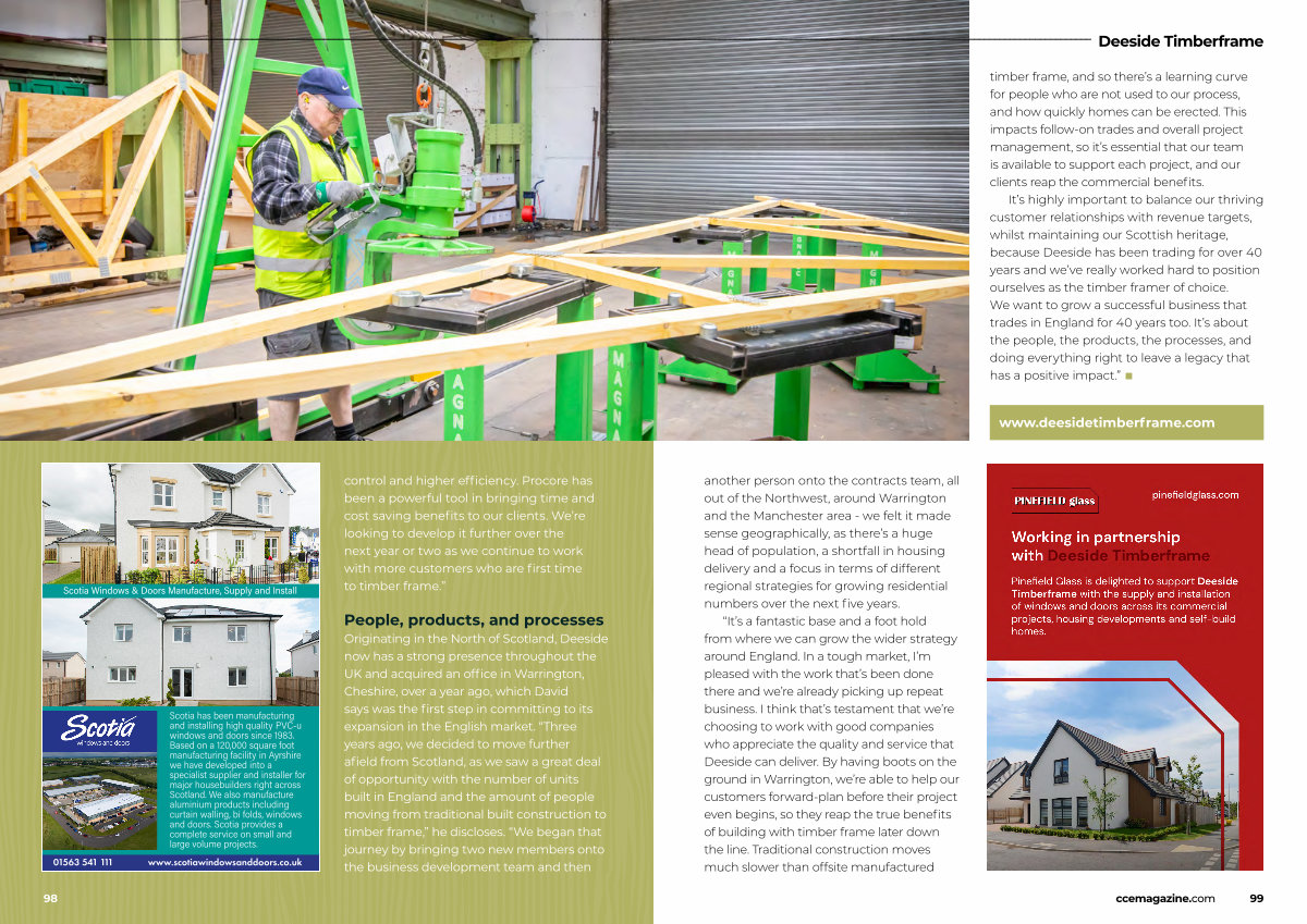 Originating in the North of Scotland, Deeside now has a strong presence throughout the UK and acquired an office in Warrington, Cheshire, over a year ago, which David says was the first step in committing to its expansion in the English market.“ Three years ago, we decided to move further afield from Scotland, as we saw a great deal of opportunity with the number of units built in England and the amount of people moving from traditional built construction to timber frame,” he discloses.“ We began that journey by bringing two new members onto the business development team and then