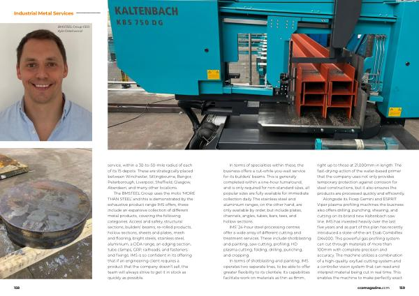 In terms of shotblasting and painting , IMS operates two separate lines , to be able to offer greater flexibility to its clientele . Its capabilities facilitate work on materials as thin as 8mm , right up to those at 21,000mm in length . The fast-drying action of the water-based primer that the company uses not only provides temporary protection against corrosion for steel constructions , but it also ensures the products are processed quickly and efficiently . Alongside its Ficep Gemini and ESPRIT Viper plasma profiling machines the business also offers drilling , punching , shearing , and cutting on its brand new Kaltenbach saw line . IMS has invested heavily over the last five years and as part of this plan has recently introduced a state-of-the-art Esab CombiRex DX4000 . This powerful gas profiling system can cut through materials of more than 100mm with complete precision and accuracy . The machine utilizes a combination of a high-quality oxyfuel cutting system and a controller vision system that can read and interpret material being cut in real time . This enables the machine to make perfectly exact