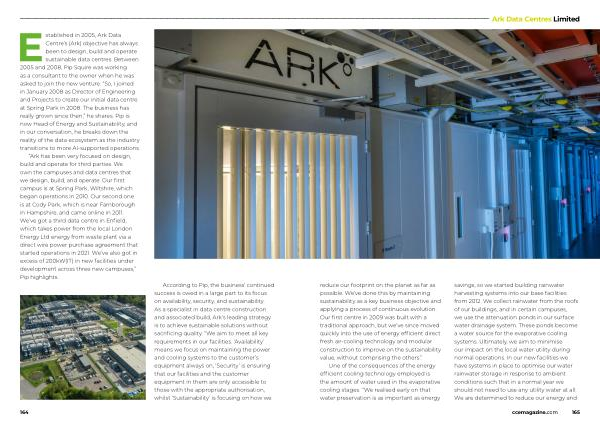 Established in 2005 , Ark Data Centre ’ s ( Ark ) objective has always been to design , build and operate sustainable data centres . Between 2005 and 2008 , Pip Squire was working as a consultant to the owner when he was asked to join the new venture . “ So , I joined in January 2008 as Director of Engineering and Projects to create our initial data centre at Spring Park in 2008 . The business has really grown since then ,” he shares . Pip is now Head of Energy and Sustainability , and in our conversation , he breaks down the reality of the data ecosystem as the industry transitions to more AI-supported operations .