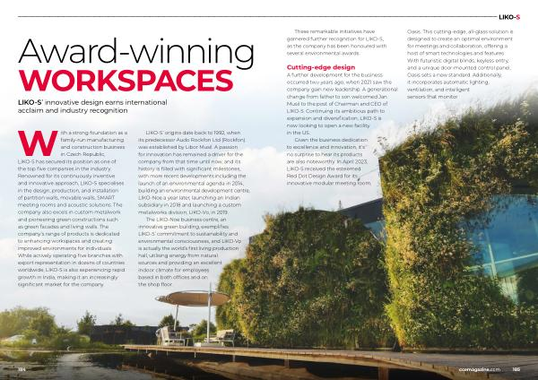 With a strong foundation as a family-run manufacturing and construction business in Czech Republic , LIKO-S has secured its position as one of the top five companies in the industry . Renowned for its continuously inventive and innovative approach , LIKO-S specialises in the design , production , and installation of partition walls , movable walls , SMART meeting rooms and acoustic solutions . The company also excels in custom metalwork and pioneering green constructions such as green facades and living walls . The company ’ s range of products is dedicated to enhancing workspaces and creating improved environments for individuals . While actively operating five branches with export representation in dozens of countries worldwide , LIKO-S is also experiencing rapid growth in India , making it an increasingly significant market for the company .
