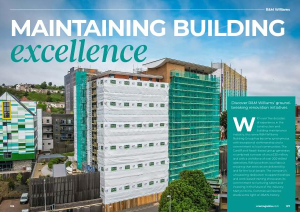 With over five decades of experience in the construction and building maintenance industry , the name R & M Williams Building Group has become synonymous with exceptional workmanship and a commitment to local communities . The Cardiff and Neath-based group generates a combined turnover of circa £ 30 million , and with a workforce of over 200 skilled operatives , R & M prioritises local labour , ensuring that services are delivered by and for the local people . The company ’ s unwavering dedication to apprenticeships and work-based training showcases its commitment to nurturing talent and investing in the future of the industry . Martyn Morris , Commercial Director , sheds some light on R & M ’ s history .