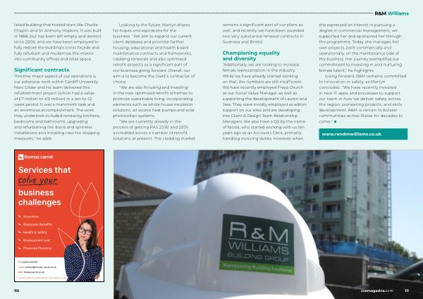 Going forward , R & M remains committed to innovation in safety , as Martyn concludes . “ We have recently invested in new IT apps and processes to support our team in how we deliver safety across the region , pioneering projects , and skills development . R & M is certain to bolster communities across Wales for decades to come .” ■