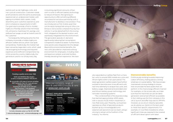“ Consequently , Kelling became the first company to provide a mobile highly eco efficient welfare service , which was quite extraordinary . Traditionally , the market had been served by large static units , which used old and ageing technology and required expensive and inefficient transportation by HGVs across the country . Additionally , the generators used to run all day every day , consuming significant amounts of fuel , with no solar or efficient battery technology to reduce emissions . Recognising an opportunity to offer something different , we entered an exclusive partnership with a manufacturer to develop a new product . Thus , we introduced our first mobile asset that can be easily transported using an Ultra-Low Emission Zone ( ULEZ ) compliant four-by-four vehicle . It can be detached from the towing hitch , dropped at the desired location , and seamlessly integrated into the environment . The generators operate on-demand , significantly reducing fuel consumption compared to traditional assets . Furthermore , solar panels were integrated into the design . Beyond the environmental benefits , the new units provided an improved working environment for employees , including clean and spacious canteen and toilet facilities , thereby elevating their experience . We have