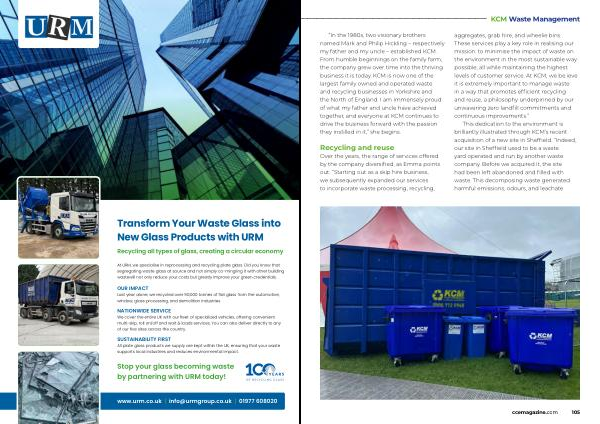 Over the years , the range of services offered by the company diversified , as Emma points out : “ Starting out as a skip hire business , we subsequently expanded our services to incorporate waste processing , recycling , aggregates , grab hire , and wheelie bins . These services play a key role in realising our mission : to minimise the impact of waste on the environment in the most sustainable way possible , all while maintaining the highest levels of customer service . At KCM , we believe it is extremely important to manage waste in a way that promotes efficient recycling and reuse , a philosophy underpinned by our unwavering zero landfill commitments and continuous improvements .”