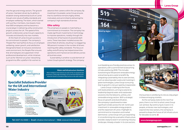 Lanes Group is looking to the future with bold ambitions , aiming to extend its leadership beyond water and wastewater solutions into the telecoms , utilities , and renewable energy sectors . With a strategic focus on growth and diversification , the company is positioned to make significant strides across the UK . Continued investment in renewable energy projects and the expansion of Lanes-i highlight its commitment to innovation and market dominance . Lanes Group isn ’ t just expanding ; it is transforming into a versatile infrastructure provider , ready to excel in an evolving industry landscape . Already a leader in its core sectors ,