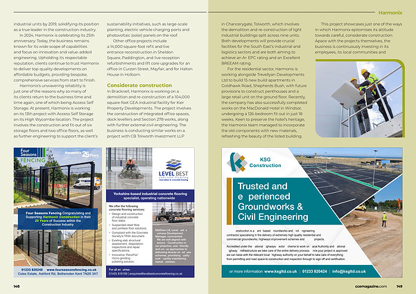 Harmonix ’ s unwavering reliability is just one of the reasons why so many of its clients return to the business time and time again , one of which being Access Self Storage . At present , Harmonix is working on its 13th project with Access Self Storage on its High Wycombe location . The project involves the construction and fit-out of six storage floors and two office floors , as well as further engineering to support the client ’ s sustainability initiatives , such as large-scale planting , electric vehicle charging ports and photovoltaic ( solar ) panels on the roof .