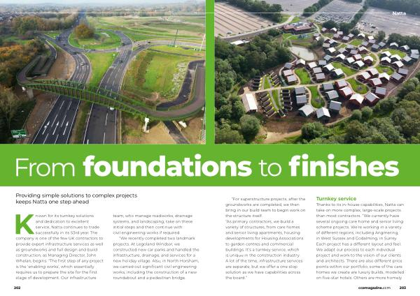 Thanks to its in-house capabilities , Natta can take on more complex , large-scale projects than most contractors . “ We currently have several ongoing care home and senior living scheme projects . We ’ re working in a variety of different regions , including Angmering , in West Sussex and Godalming , in Surrey . Each project has a different layout and feel . We adapt our process to each individual project and work to the vision of our clients and architects . There are also different price points within our portfolio , some of the care homes we create are luxury builds , modelled on five-star hotels . Others are more homely