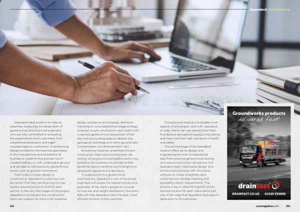The second stage of the Speedeck solution offers up its design and engineering services . Extrapolating data from previous geotechnical testing and relevant structural calculations , the Speedeck team intertwines design and construction prowess with innovative software to create straightforward , contemporary models meeting and exceeding clients ’ requirements . This process is key in determining the correct tailored solution for each client and is just one of the ways that Speedeck illustrates its dedication to its customers .