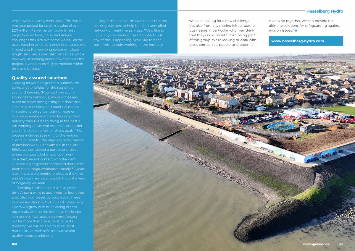 “ Looking further ahead, in five years’ time Ancora want to add three-to-four other specialist businesses by acquisition. These businesses, along with TMS and Hesselberg Hydro will grow with our existing clients organically and be the definitive UK leader in marine infrastructure delivery. Ancora will be more than the sum of its parts meaning we will be able to solve most marine issues with safe, innovative and quality assured solutions.”