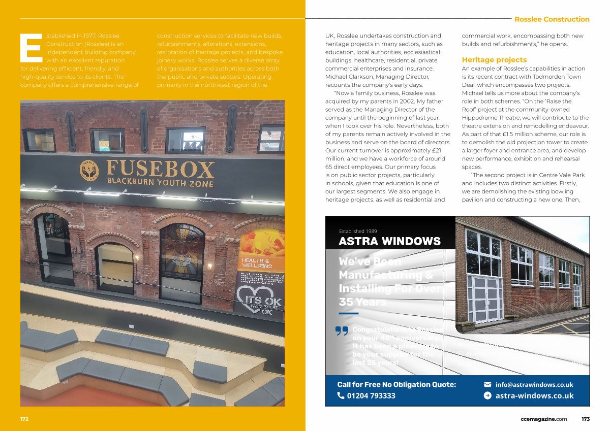 UK, Rosslee undertakes construction and heritage projects in many sectors, such as education, local authorities, ecclesiastical buildings, healthcare, residential, private commercial enterprises and insurance. Michael Clarkson, Managing Director, recounts the company’ s early days.