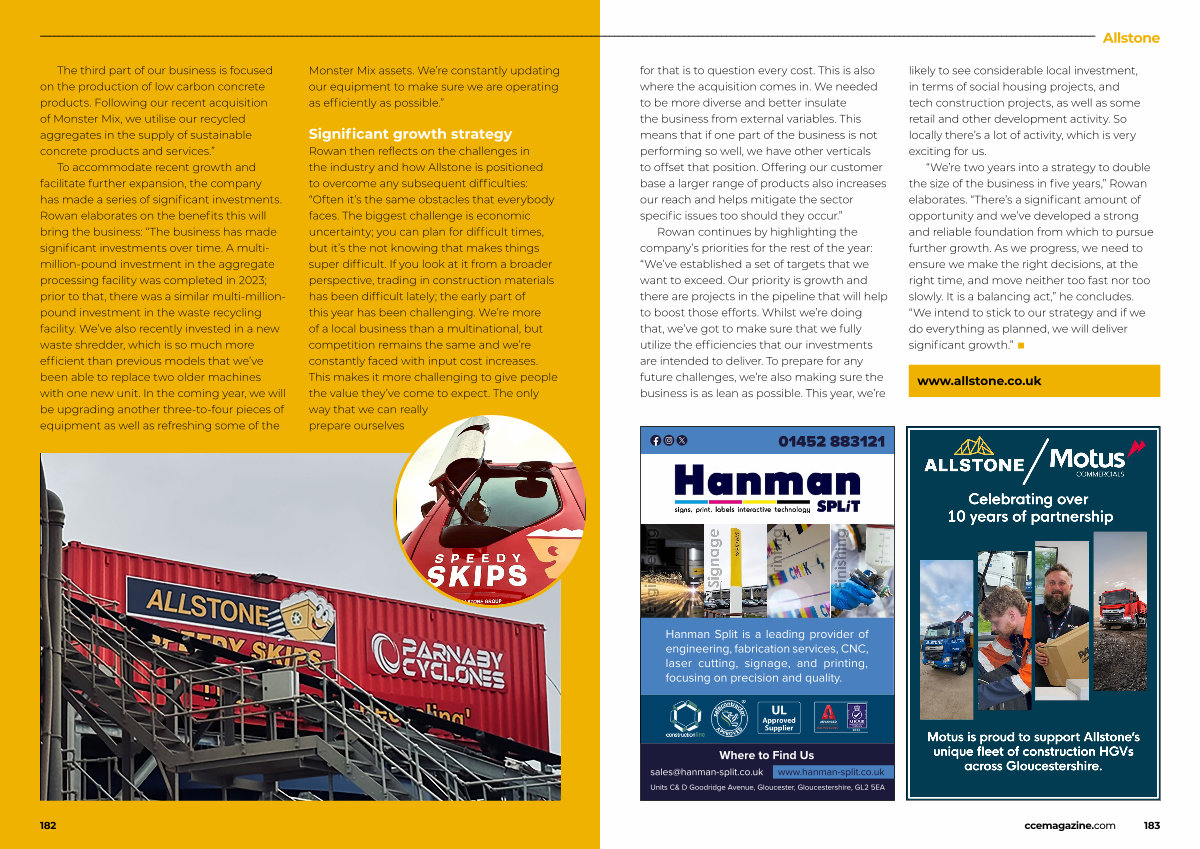 Allstone for that is to question every cost. This is also where the acquisition comes in. We needed to be more diverse and better insulate the business from external variables. This means that if one part of the business is not performing so well, we have other verticals to offset that position. Offering our customer base a larger range of products also increases our reach and helps mitigate the sector specific issues too should they occur.”