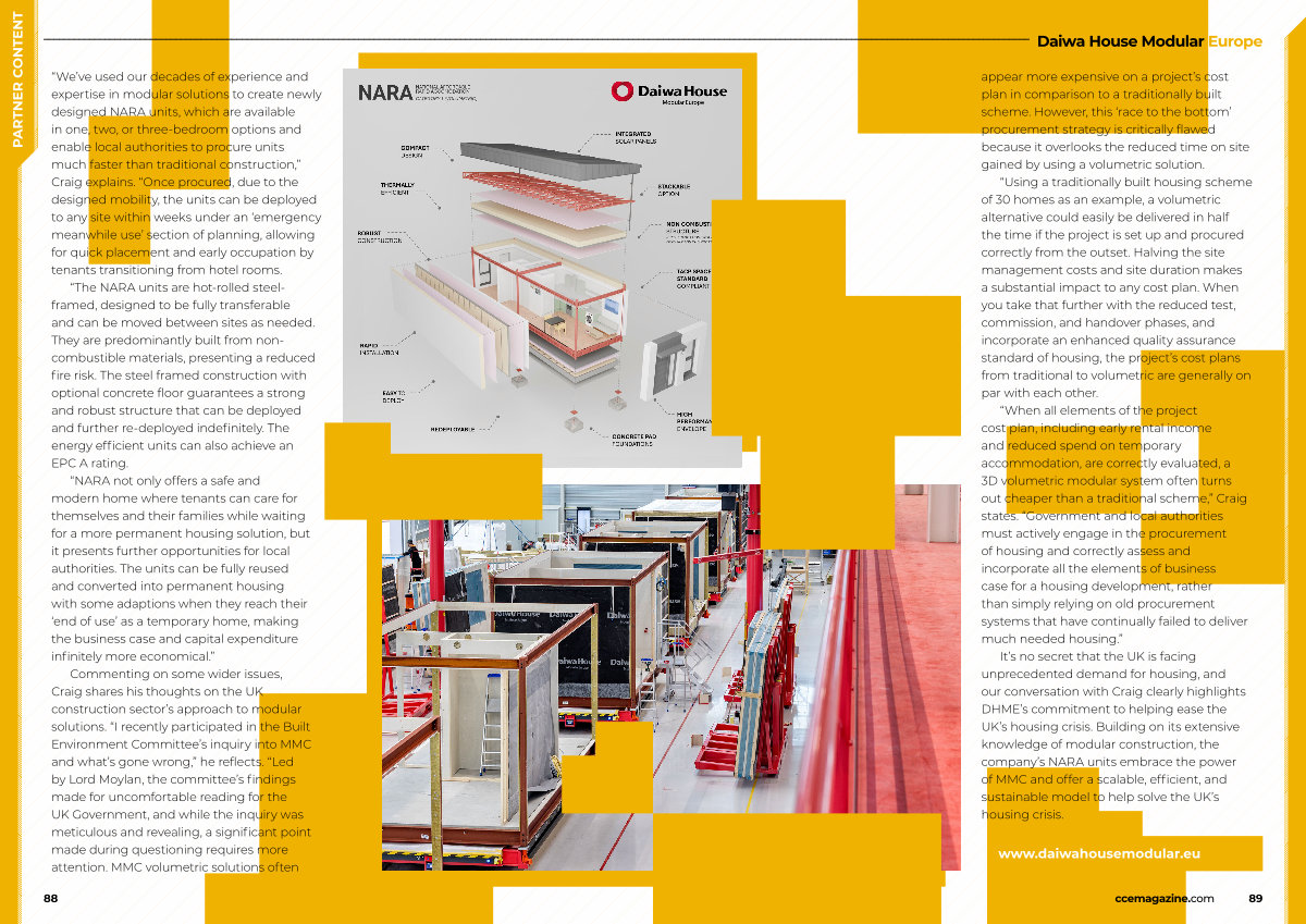 Commenting on some wider issues, Craig shares his thoughts on the UK construction sector’ s approach to modular solutions.“ I recently participated in the Built Environment Committee’ s inquiry into MMC and what’ s gone wrong,” he reflects.“ Led by Lord Moylan, the committee’ s findings made for uncomfortable reading for the UK Government, and while the inquiry was meticulous and revealing, a significant point made during questioning requires more attention. MMC volumetric solutions often